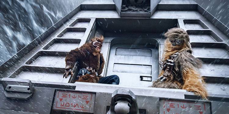 Opening Friday nationwide, director Ron Howard’s Solo: A Star Wars Story stars Alden Ehrenreich as Han Solo, Donald Glover as Lando Calrissian, Emilia Clarke as Qi’ra, and Joonas Suotamo as Chewbacca. They’re joined by Thandie Newton as Val, Phoebe Waller-Bridge L3-37, Paul Bettany as Dryden Vos and Woody Harrelson as Tobias Beckett.